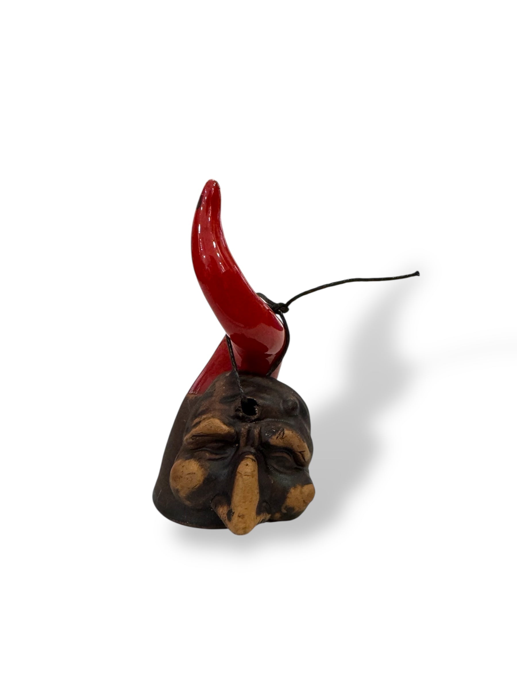 Corno in terracotta smaltato con maschera h 10 cm