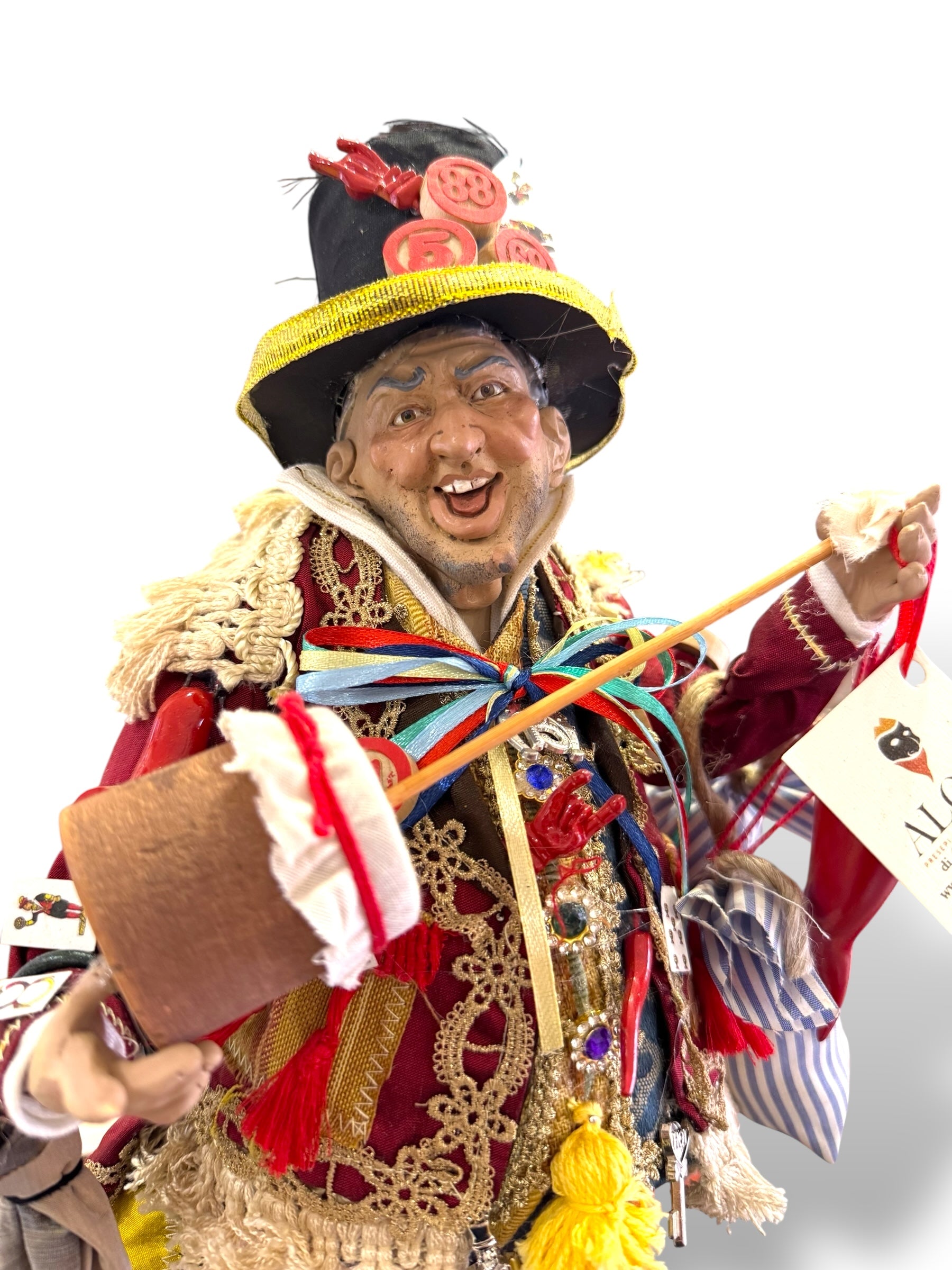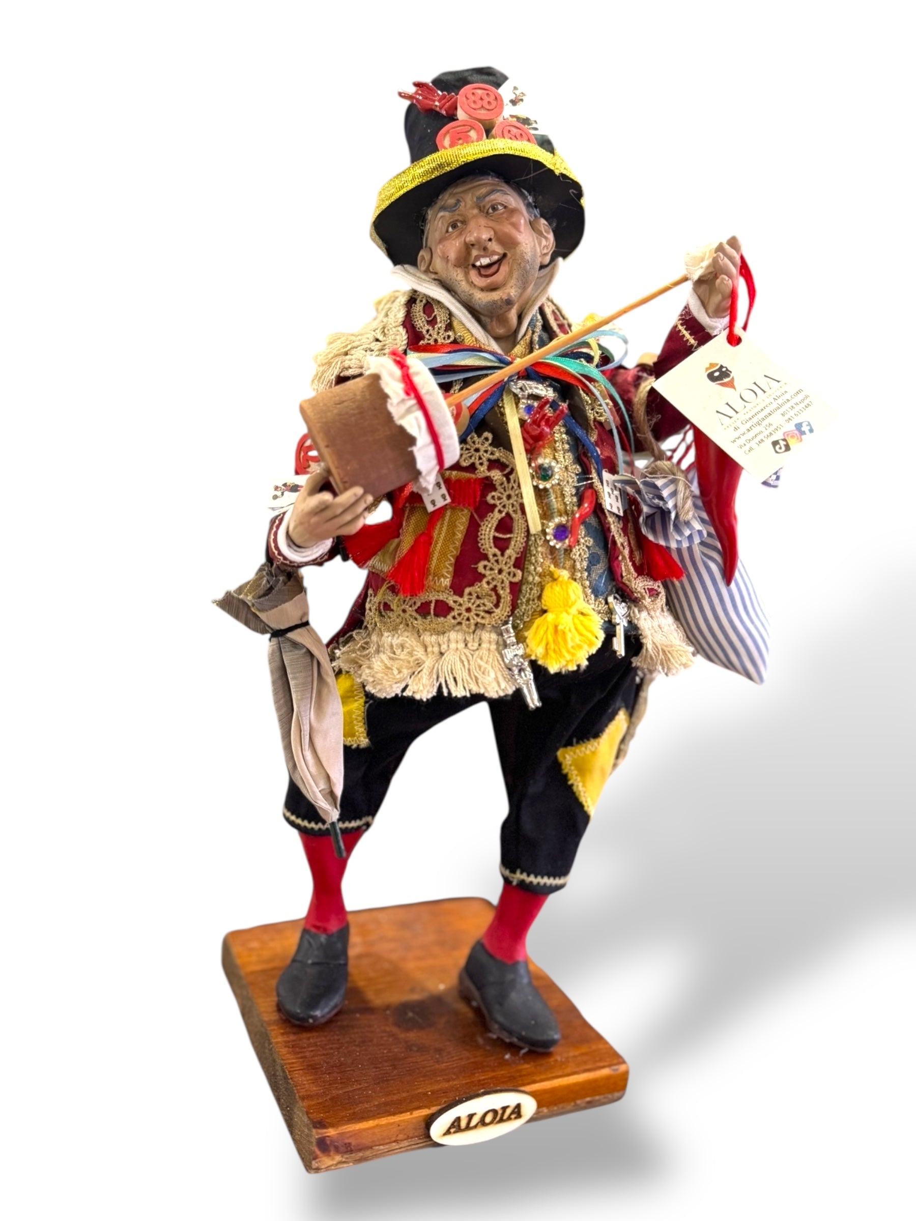 Lo Sciò Sciò è una figura fortemente radicata nella cultura scaramantica napoletana: è un simbolo di buona sorte e protezione. Il suo volto buffo, la gobba e gli amuleti appesi ai vestiti (come coni e ferri di cavallo) sono tutti elementi carichi di significato, pensati per scacciare il malocchio e le negatività. Questa statuina non nasce nel presepe, ma si radica nella tradizione popolare come portatore di auspici e prosperità.